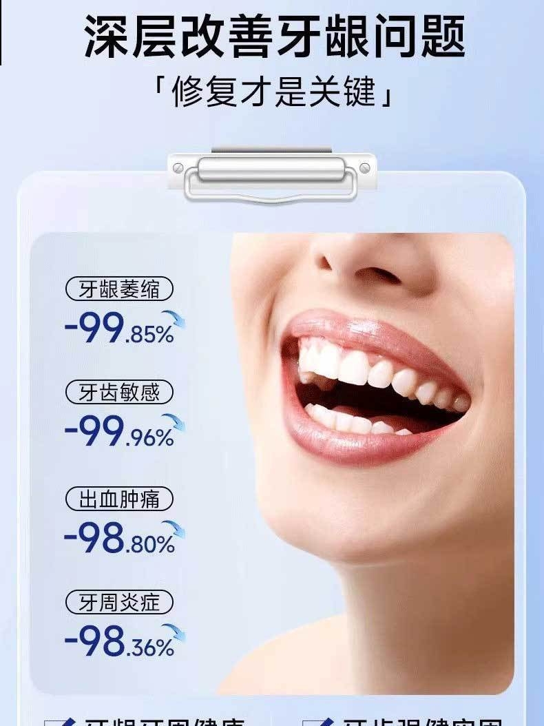 【产品名称】辅酶Q10口腔护理膏 【规格】120g/支 【适宜人群】 •口腔黏膜易受损人群:如经常出现口腔溃疡、牙龈红肿或口腔黏膜轻微破损的人,辅酶Q10具有一定的抗氧化和促进组织修复的作用,有助于维护口腔黏膜健康。 •口腔敏感人群:对冷热刺激、食物刺激较敏感,容易出现牙龈不适的人群,该护理膏可能通过舒缓作用改善敏感症状。 •注重口腔健康保养者:希望通过日常护理预防口腔问题(如牙龈问题、口腔炎症)的人群,可将其作为常规口腔护理的补充。 •有基础口腔问题恢复期人群:如牙周治疗后、拔牙后等处于口腔组织修复阶段的人,辅酶Q10的修护特性可能辅助恢复。 【使用方法】将膏体挤到牙刷上蘸水,对着牙齿轻轻摩擦,摩擦1-3分钟后,含水漱口吐掉即可。